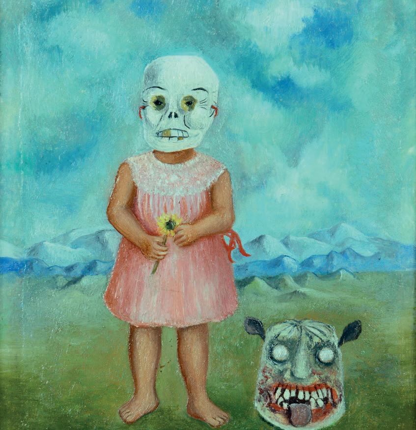 Este cuadro pintado por la mexicana Frida Kahlo está inspirado en la tradición del Día de muertos, en elementos precolombinos como la máscara de tigre que se encuentra en el suelo y en la propia vida de la artista quien perdió una bebé en un aborto espontáneo. La fusión de elementos culturales enfatiza en este cuadro un culto y respeto ancestral por la muerte.