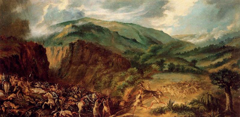Una vez que haya establecido este marco e información, pida a los estudiantes que se organicen por grupos. Lleve al aula reproducciones de algunas pinturas como La batalla de Acentejo, de Gumersindo Robayna, El adelantado y los guanches, de Manuel Gonzaléz Méndez, Alonso Fernández de Lugo, de Manuel González Méndez, La funda ción de Santiago, por Pedro Lira, Primer desembarco de Cristóbal Colón en América, de Dióscoro Puebla… A partir de lo que cada grupo observe en las imágenes, pídales que establezcan lo que significó ese primer momento de encuentro entre los pueblos aborígenes y los europeos.