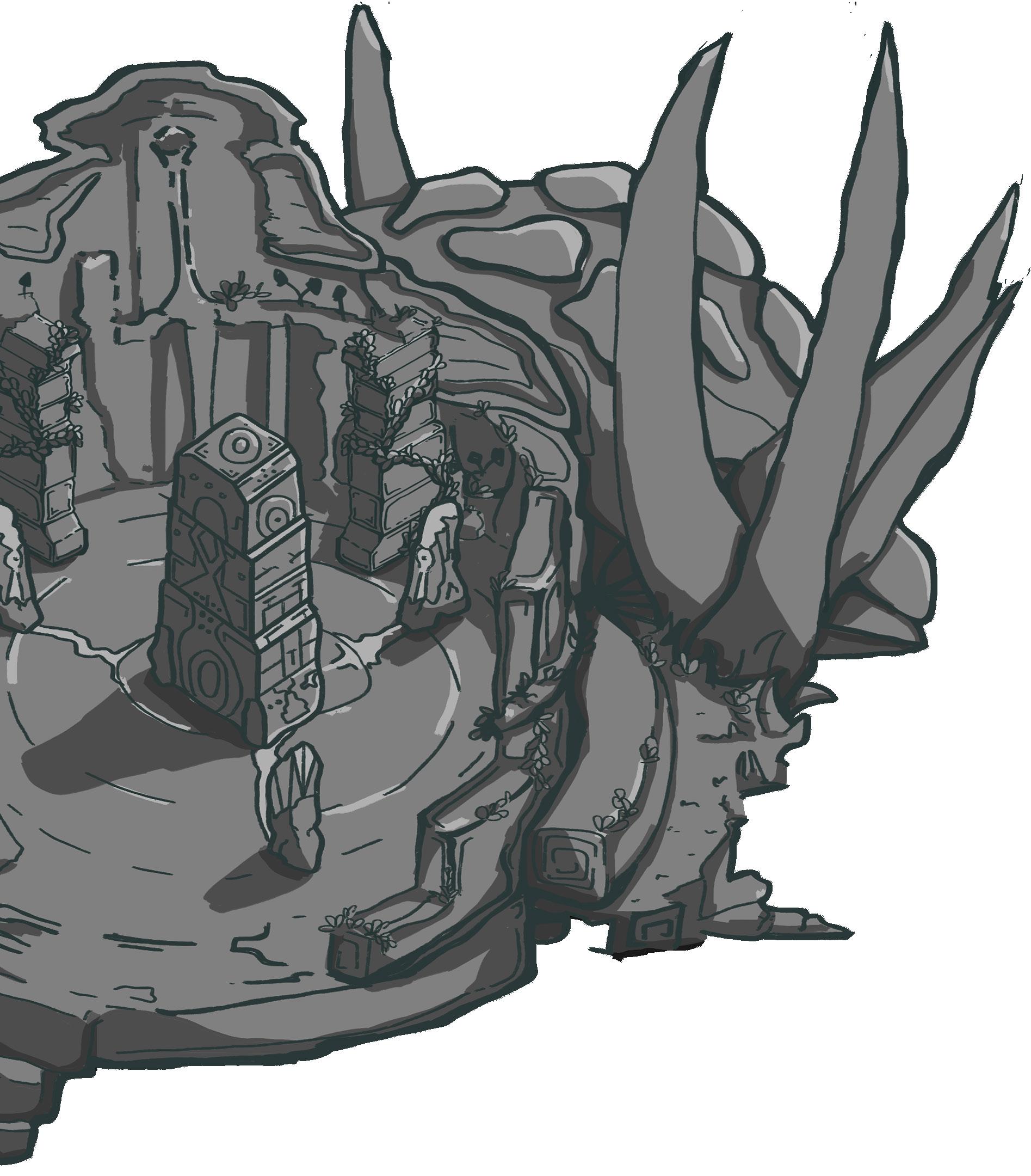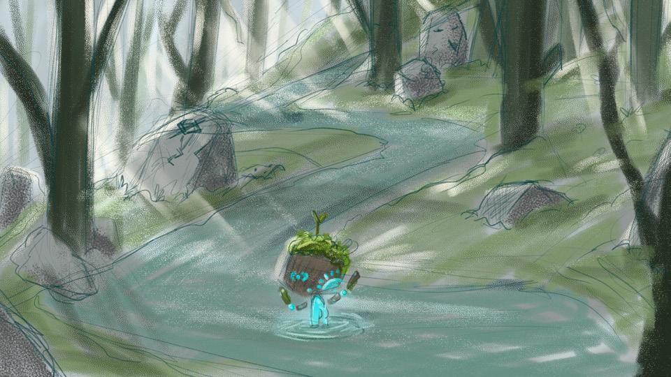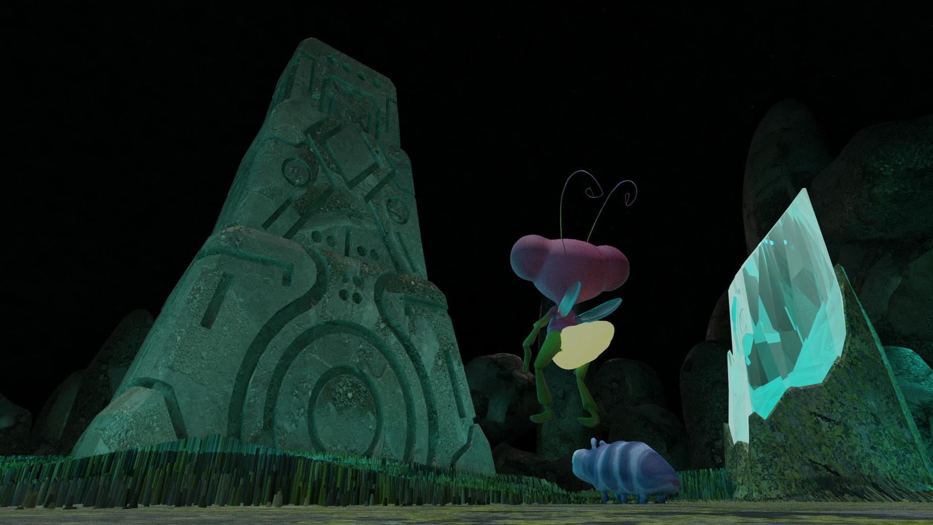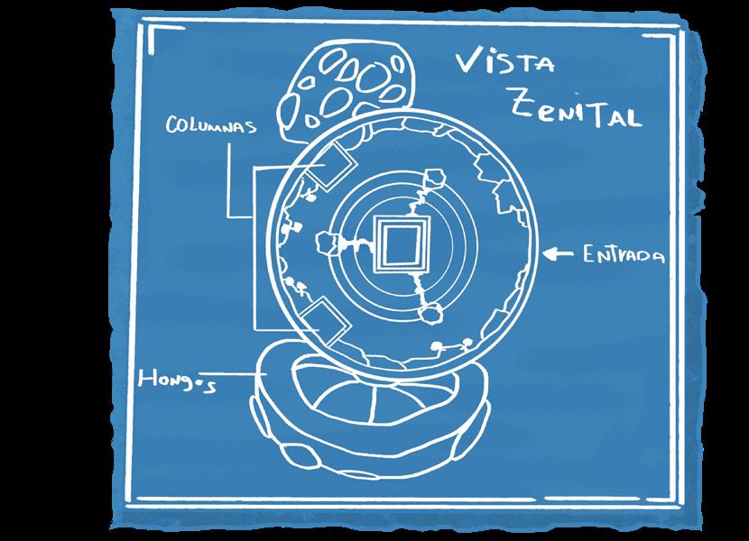 El concepto inicial era un area organica, con ruinas prehispanicas, pero todo integrado en un universo en miniatura, tomando la perspectiva de dos luciernagas como la escala humana.