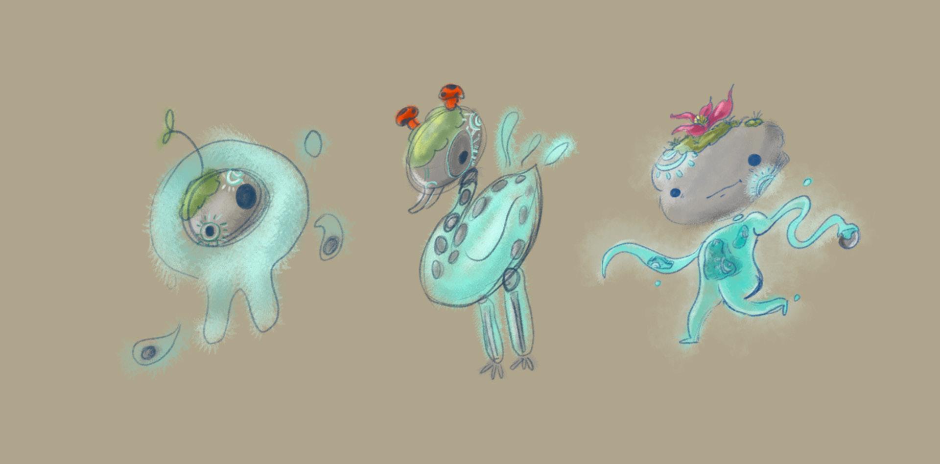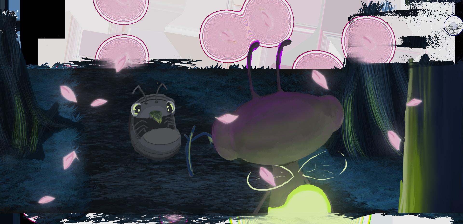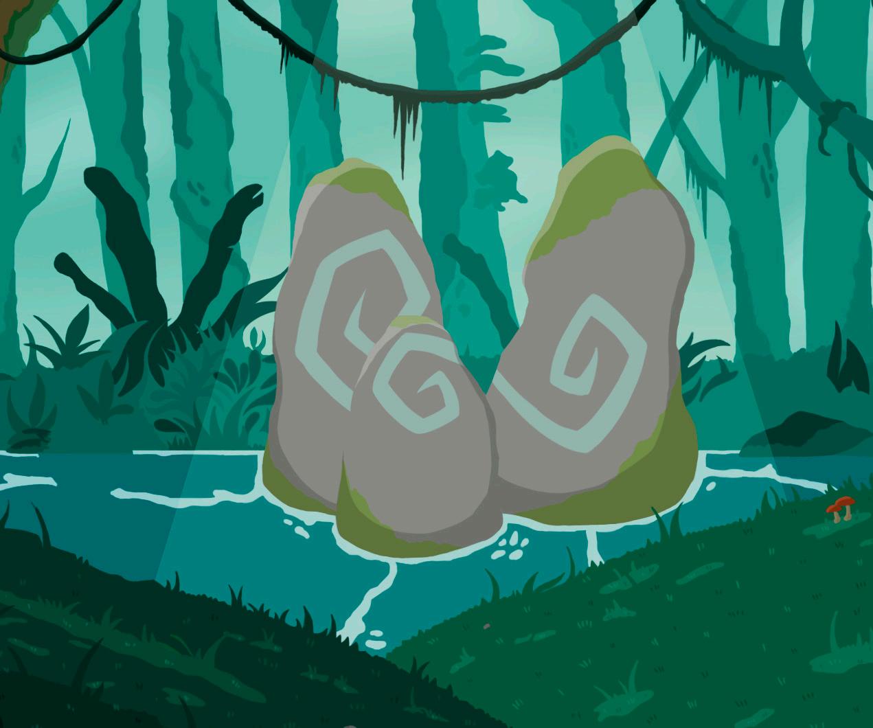 El concepto inicial era un area organica, con ruinas prehispanicas, pero todo integrado en un universo en miniatura, tomando la perspectiva de dos luciernagas como la escala humana.