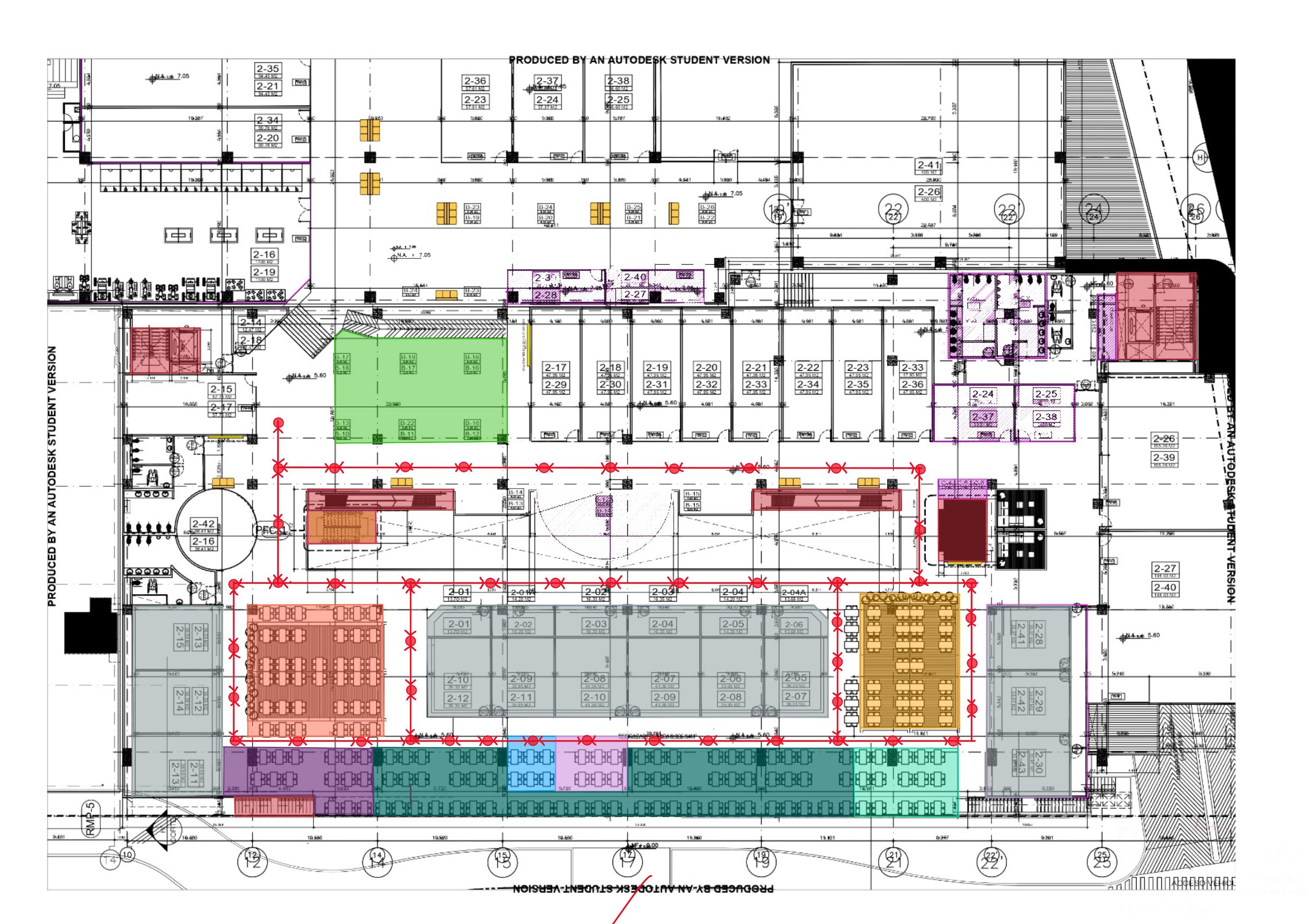 3.No existe mobiliario indi simplique las áreas de ocupación.