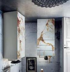 Ausführung unten: Frontverkleidung Glas folienbeschichtet in Calcatta Gold