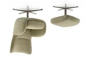 Ohrenbackensessel BULLY; in Stoff Opera thyme; Drehgestell schwarz; 868,Hocker 49x48 cm; Drehgestell schwarz 299,-