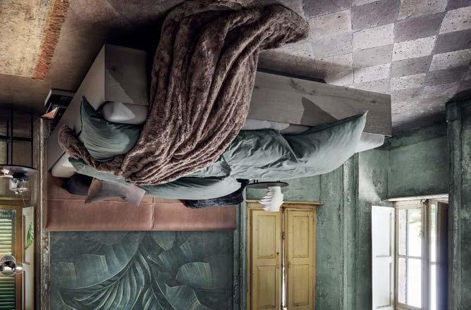 Abb. oben rechts: pl.Malu 2.0 Polsterbett, Größe 180x210 cm, Sitzhöhe 66 cm, in Stoff Bloq Eucalyptus, inkl. Rost starr und Matratze pl.Jack, Preis 4046.-