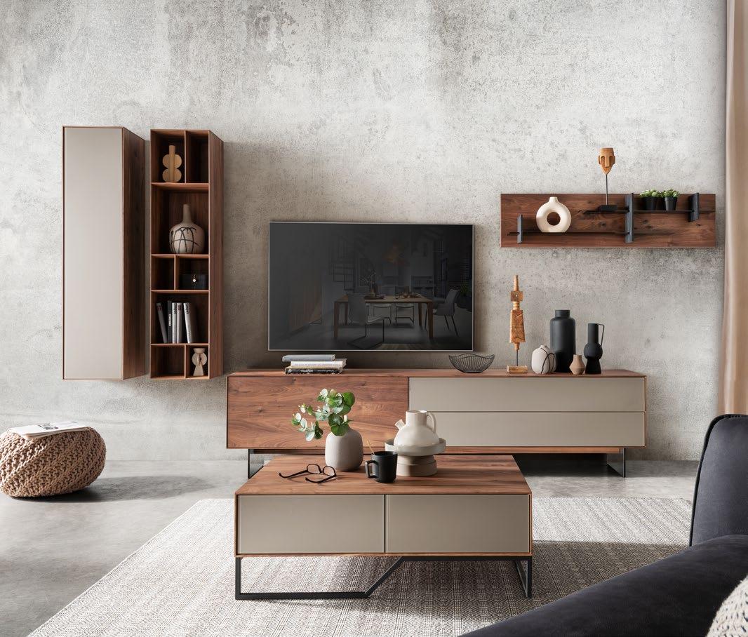 Entdecken Sie unser Wohnprogramm pl.Tookan mit feinem Korpus und einer eleganten Sichtkante von nur 6 mm. Dieses einzigartige Design verleiht Ihrem Wohnraum eine dezente Eleganz, während die schmale Kante die Fronten subtil umrahmt. Das Wohnprogramm ist in Eiche und in Nussbaum erhältlich. z.B. Lowboard, BxHxT 220,5x54,4x43 cm, Ausführung Korpus Nussbaum, Schubkasten, Glas, Klappe in Nussbaum Preis ab 4157,-