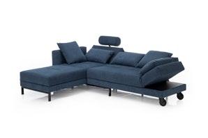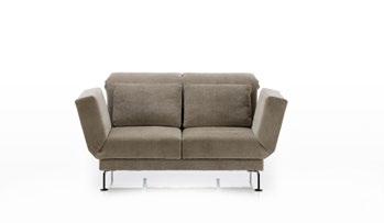 Recamiere mit lässigem Charme und flexiblen Lehnen: Rücken und Seiten absenkbar, Seitenlehne vorziehbar. Mit zweiter Lehne entsteht ein Openend, kombinierbar zur Eckformation mit Liege-/Schlaffunktion. Bezüge abziehbar, Rollen am Kopfteil, optional Kopfstützen.