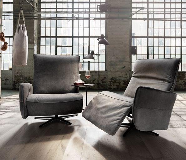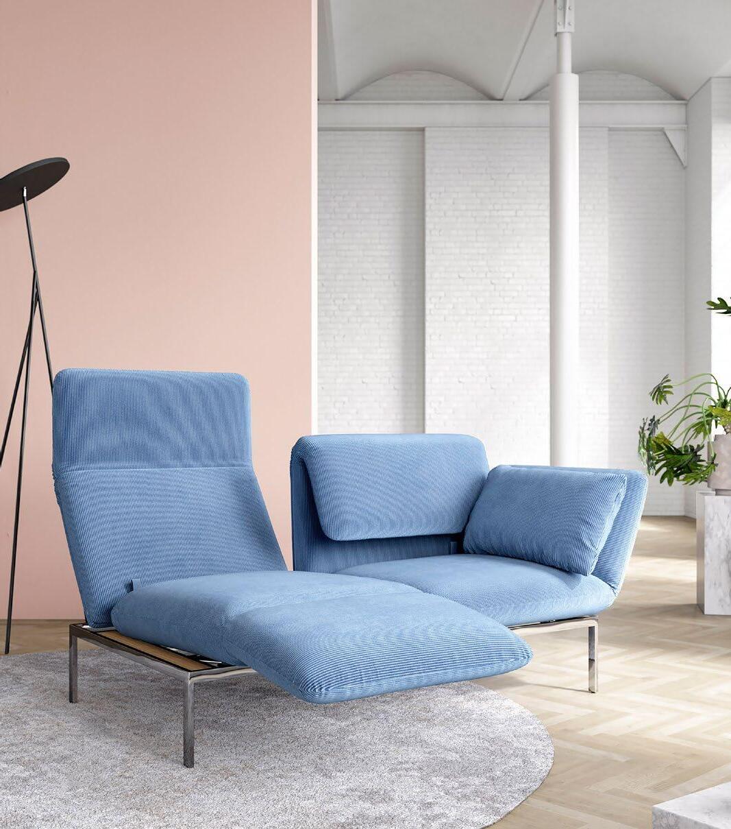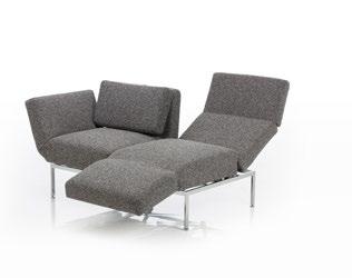 Kompakt und wandelbar: Der Multifunktionssessel mit Drehfunktion (optional Andocktisch) bietet Sitzen, Entspannen und Liegen. Das Sofa mit zwei Drehsitzen wird durch Absenken der Armlehne zum Daybed. Sitze separat verstellbar. Abziehbare, erneuerbare Bezüge, elegantes Untergestell.