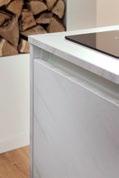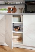 Die Paul Lindberg-Küche betont Form und Funktionalität, bietet aber insgesamt ein zurückhaltendes, unauffällig zu integrierendes Erscheinungsbild. Ihre grifflose Front unterstreicht ihre flächige Wirkung mit extrabreiten, großzügigen Auszügen im Zusammenspiel mit Hochschränken.