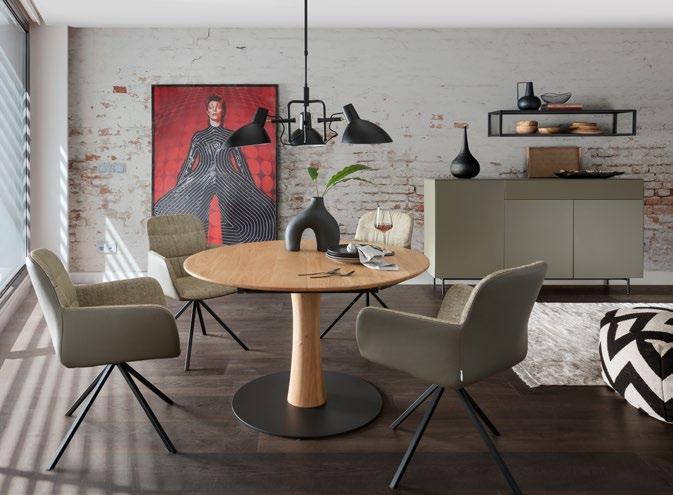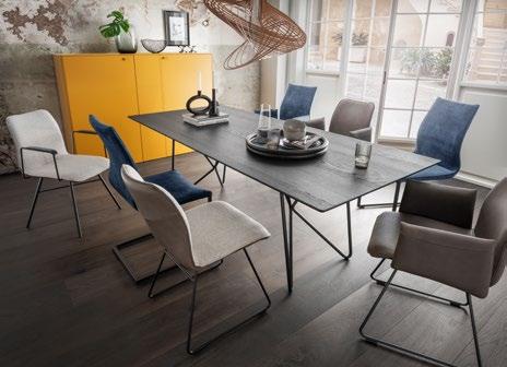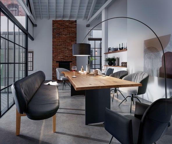 Ausführung: Eiche oder Nussbaum massiv, Gestell: K1 pulverbeschichtet, Länge in 10 cm Schritten von 160 cm bis 300 cm, Breite 90 cm oder 100 cm; Höhe 76 cm, Preis in Eiche ab 1535,-, in Nussbaum ab 1949,-, Mehrpreis K1 Gestell 495,11. Stuhl pl.Noah