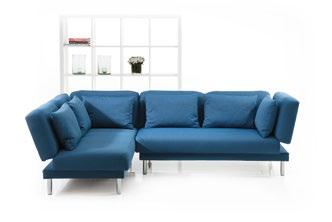 moule small – the original since 2003 Platzsparend und wandelbar: Sofa oder Sessel mit 90° drehbaren Sitzen verwandeln sich in Liege oder Gästebett (130×196 cm / 65×196 cm). Die Ecklösung moule extra small mit Hocker bietet drei gleich große Liegeplätze. Optional Tischmodul, höhenverstellbares Gestell, Bezüge abziehbar.