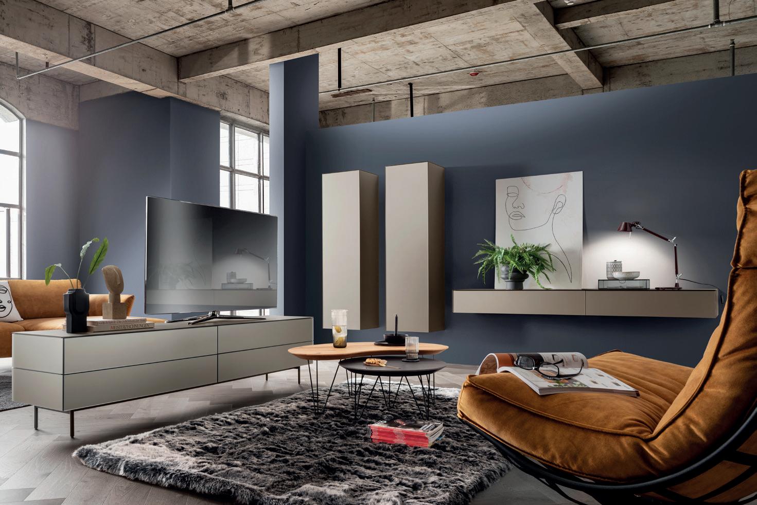 Ausführung: Lack cashmere mit Akzentabsetzung in Eiche furniert, Push-To-Open-Griffe, inkl. 2 Schubkästen, 2 Auszügen und 2 Türen, ca. B.182/H.109,7/T.45 cm, Preis 3967,-