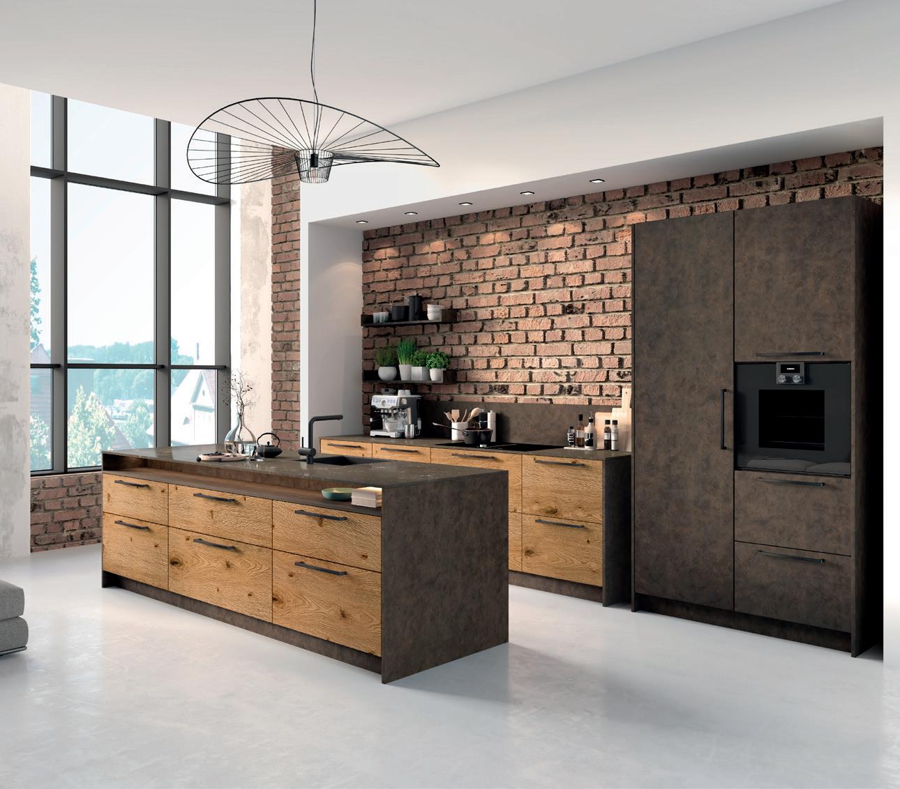 Echtholzfronten in Perfektion! Schlicht oder Rahmen, glatt oder gebürstetund das in teils verschiedenen Farben. Die Kombination aus schlichter Eleganz und cleveren Detailplanungen lassen unser Herz bei dieser Küche höherschlagen. In dieser Küche ist mehr als nur minimalistische Vollkommenheit gefragt. Diese Komposition von Betonstruktur mit gebürstetem Echtholz strahlt immer etwas Besonderes aus. Ein extravagantes Zusammenspiel aus dominanten Materialien und konsequenter Designführung. Eine Planung die keine Wünsche mehr offen lässt!