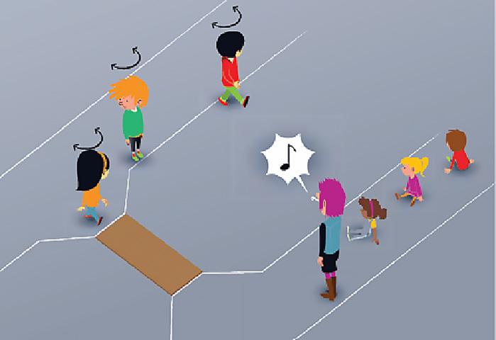 Denk er ook hier aan om een bocht te leggen langs de hoek van een gebouw of speeltuig. Zo zien de leerlingen onmiddellijk op welke plaats ze het beste zicht hebben.