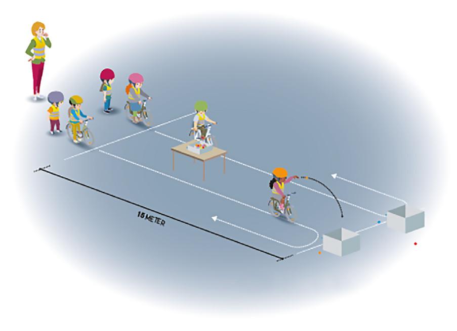 2. De kinderen kunnen als fietser hun arm strekken zonder af te wijken van hun rechte lijn.