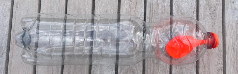 Bevestig de ballon aan de dop van de petfles zoals op bovenstaande foto.