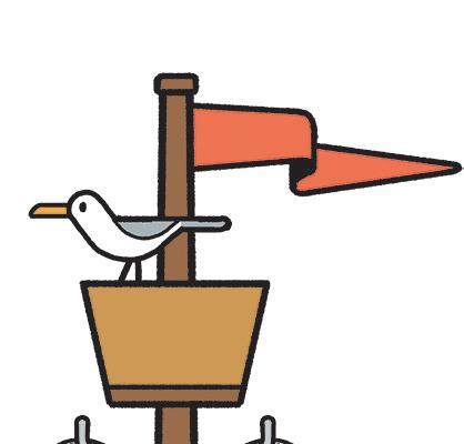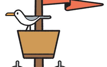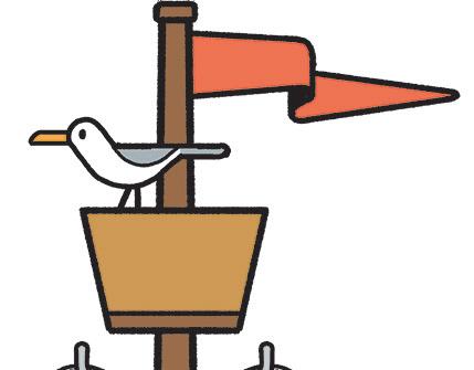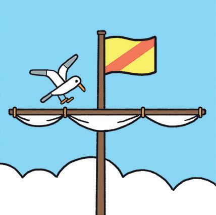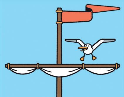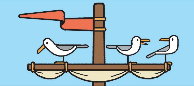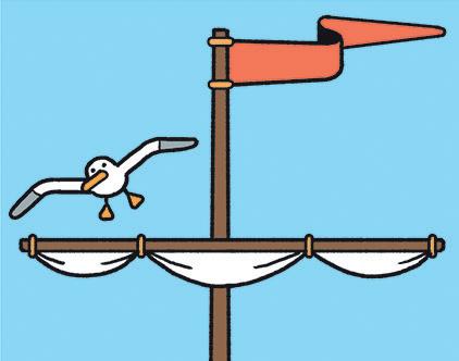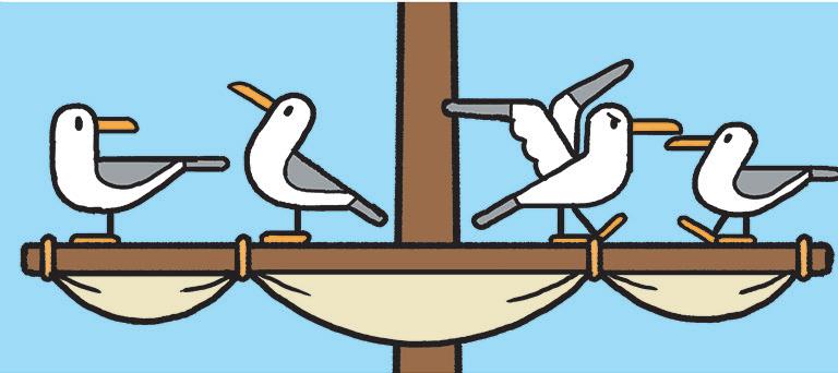 je ziet de meeuw links van de mast. je ziet de meeuw rechts van de mast.