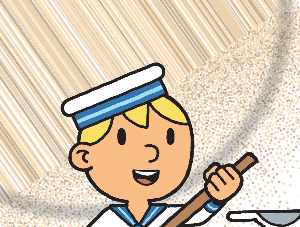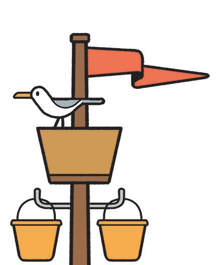 neem de splitsemmer en gebruik je schelpen . bij 10 is er een emmer vol, we hebben een T .