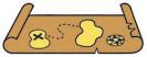 leg evenveel = jetons in de schatkist. teken evenveel = op je wisbord.