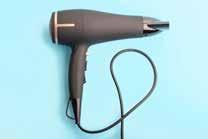 Lisa droogt haar gewassen haar met een haardroger.