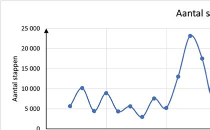 Rond welke data is duidelijk een verhoging van het aantal stappen per dag te zien op de grafiek?