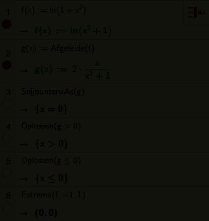 Ik kan het stijgen/dalen en de extrema van een logaritmische functie bepalen aan de hand van het voorschrift van de eerste afgeleide functie.