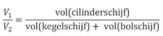 Omdat deze 3 schijven dezelfde (infinitesimale) dikte hebben, kan de verhouding beschouwd worden als de verhouding van de oppervlaktes van de cirkelvormige doorsneden. Omdat een gemeenschappelijke factor is, kunnen we ons zelfs beperken tot de kwadraten van de stralen in de berekening van deze verhouding: