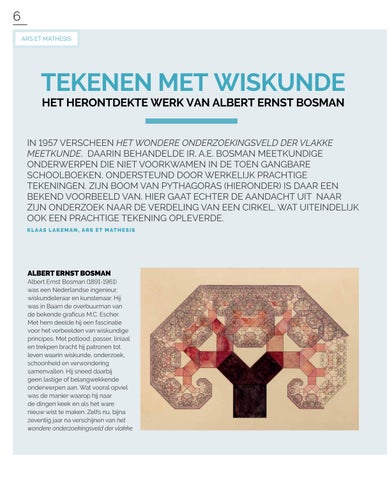 Albert Ernst Bosman (1891-1961) was een Nederlandse ingenieur, wiskundeleraar en kunstenaar. Hij was in Baarn de overbuurman van de bekende graficus M.C. Escher. Met hem deelde hij een fascinatie voor het verbeelden van wiskundige principes. Met potlood, passer, liniaal en trekpen bracht hij patronen tot leven waarin wiskunde, onderzoek, schoonheid en verwondering samenvallen. Hij sneed daarbij geen lastige of belangwekkende onderwerpen aan. Wat vooral opviel was de manier waarop hij naar de dingen keek en als het ware nieuw wist te maken. Zelfs nu, bijna zeventig jaar na verschijnen van het wondere onderzoekingsveld der vlakke