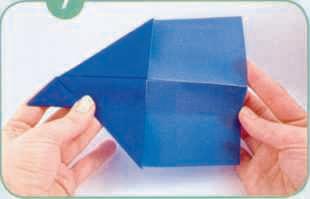 1 | Vouw het blauwe papier diagonaal naar de andere kant.