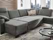 bestehend aus: 1 Zweisitzer mit Armlehne links und Schlaffunktion, 1 Ottomane rechts mit Bettkasten, mit Kissen, Stellmaß ca. 297 x 207 cm, Liegefläche ca. 153 x 240 cm, Stoff grau 1007004001