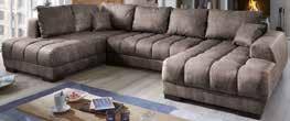 bestehend aus: 1 Dreisitzer mit Armlehne links, 1 Spitzecke, 1 Zweisitzer ohne Armlehne, 1 Abschlusshocker rechts, mit Federkernpolsterung, Stellmaß ca. 266 x 257 cm, Stoff braun, ohne Deko-Kissen