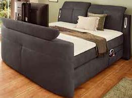 Liegefläche ca. 180 x 200 cm, Unterfederung: Box mit Bonell-Federkernpolsterung, Obermatratze 7-Zonen-Tonnentaschenfederkern-Matratze, inkl. Topper, 2x USB-Ladeports, Kopfstützen im Kopfteil verstellbar, LED-Beleuchtung, zur Montage eines eigenen TV`s bis 42“, Stoff dunkelgrau, ohne Deko-Kissen, ohne Decke, ohne TV-Gerät 0180002400