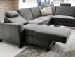 bestehend aus: 1 Zweisitzer mit Bettfunktion links, 1 Recamiere mit Bettkasten rechts, mit Kopfteilverstellung, Nosagfederung, Rücken echt, Stellmaß ca. 262 x 214 cm, Liegefläche ca. 195 x 124 cm, Stoff grau 0415007105