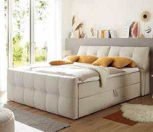 ca. 140 x 200 cm, Unterfederung mit BonellFederkern, Obermatratze Bonell-Federkern, mit PU-Topper, mit Bettkasten mit Gasdruckfedern, Stoff