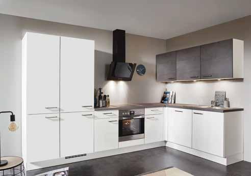 3999,36 x mtl ab 120,- * oder Glaskeramik-Kochfeld inkl. Geschirrspüler Individuell planbar Crema Hellgrau Weiß Dunkelblau Beton hell Anthrazit Magnolia Beton Steinweiß Auszug aus den lieferbaren Fronten 1 Eckküche Win/Base, ca. 180 + 280 cm, weiß/Stahl dunkel inkl. Backofen Ignis AKB20102IX A** inkl. Turmhaube Elica Spot 90 IX D** inkl. Glaskeramikkochfeld Terma Cook HKT-604EU inkl. KochstellenAuszugschrank inkl. Kühlschrank GGV KS88-F F A G inkl. Geschirrspüler Ignis AIE2B19A F A G Preisgleich in 12 Frontfarben lieferbar 5 Küche in U-Form Laser, ca. 160 x 295 x 305 cm, Magnolia inkl. Backofen Laurus LEB3 A** inkl. Turmhaube Elica IX/A/60 D** inkl. Glaskeramikkochfeld Laurus LCA 60 inkl. Arbeitsplatte als Esstheke inkl. Auszugschränke, inkl. Rückwandverkleidung