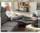 bestehend aus: 1 Zweisitzer mit Armteil links, 1 Ottomane rechts, mit Kissen, links und rechts montierbar, Stellmaß ca. 250 x 179 cm, Stoff grau, ohne Hocker