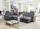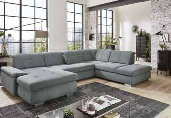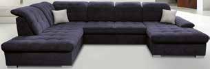 Salon panoramique Viera comprenant: 1 canapé 2 places avec fonction convertible à gauche, 1 récamiere coffre à literie à droite, avec réglage du appuie-tête, encombrement env. 271 x 221 cm, couchage