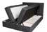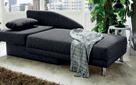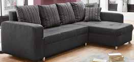 comprenant: 1 canapé 2 places avec fonction convertible et coffre à literie à gauche, 1 récamiere à droite, avec coussins, encombrement env. 234 x 150 cm, couchage env. 137 x 200 cm, tissu noir