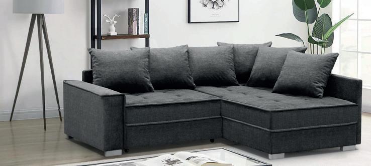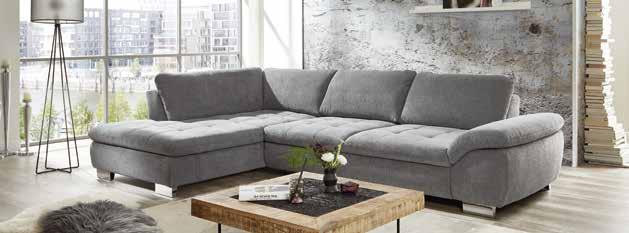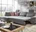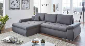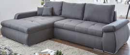comprenant: 1 méridienne avec accoudoir à gauche, 1 canapé 2 places avec fonction convertible et coffre à literie à droite, avec coussins, encombrement env. 175 x 278 cm, couchage env. 125 x 235 cm, tissu gris 1018001600