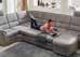 Salon panoramique Apollo comprenant: 1 canape avec réglage du siège et accoudoir à gauche, 1 canapé 2,5 places avec réglage du siège, 1 angle aigu, 1 canapé 1,5 places avec réglage du siège et pouf términal à droite, rembourrage en mousse froide, encombrement env. 195 x 371 x 260 cm, tissu gris, sans dossier réglable, sans coussins-déco