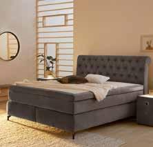 couchage env. 180 x 200 cm, encombrement env. 189 x 223 cm, en suspension à ressorts de Bonell, la poche supérieure matelas 7-zones à ressorts, avec coffre à literie, avec 2 grande et 2 petite coussins, tissu gris 0180010501 2 portes en miroirs 0435000812 1199,99 Chevet L/H/P env. 58/50/39 cm 0435000811