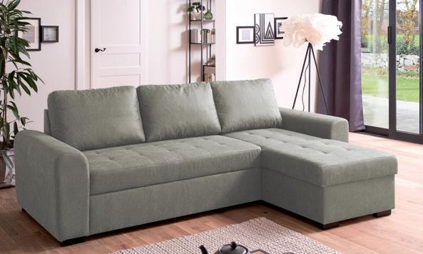 bestehend aus: 1 Zweisitzer mit Bettfunktion links, 1 Recamiere mit Bettkasten rechts, mit Kopfteilverstellung, Nosagfederung, Rücken echt, Stellmaß ca. 262 x 214 cm, Liegefläche ca. 195 x 124 cm, Stoff grau 0415007105 36 x mtl ab 30,- * oder
