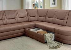 bestehend aus: 1 Ottomane mit Bettkasten links, 1 Zweisitzer mit Bettfunktion, 1 Recamiere rechts, Rücken echt, mit Sitztiefenverstellung, Stellmaß ca.