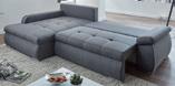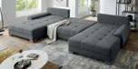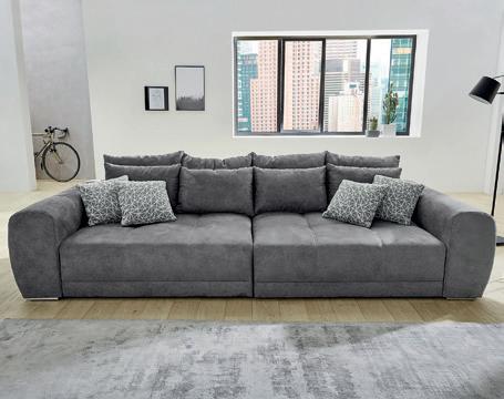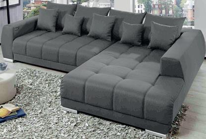comprenant: 1 canape avec réglage du siège et accoudoir à gauche, 1 canapé 2,5 places avec réglage du siège, 1 angle aigu, 1 canapé 1,5 places avec réglage du siège et pouf términal à droite, rembourrage en mousse froide, encombrement env. 195 x 371 x 260 cm, tissu gris, sans dossier réglable, sans coussins-déco