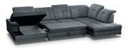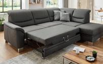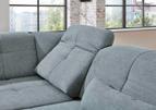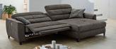 comprenant: 1 canapé 1 places élément combiné avec pouf à gauche, 1 canapé 2,5 places avec accoudeur à droite, à ressorts, avec réglage du appuie-tête, tissu gris, sans coussins