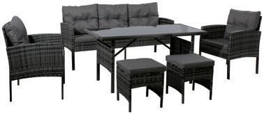 Wave rotin en plastique noir, comprenant: 1x canapé 3 places, 2x fauteuils, 1x coffee table, 2x poufs