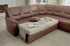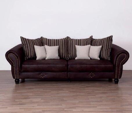 comprenant: 1 canapé 3 places avec accoudoir à gauche, 1 angle aigu, 1 canapé 2 places sans accoudoir, 1 pouf terminal à droite, à ressorts, encombrement env. 266 x 257 cm, tissu brun, sans coussins-déco