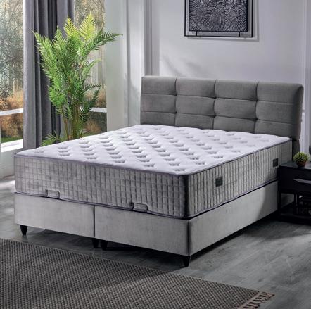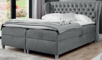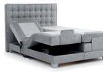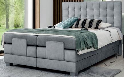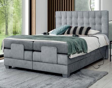 Play couchage env. 180 x 200 cm, matelas supérieur à ressorts ensachés pocket avec topper, tête et pied de lit réglables électrque, tissu argent, sans coussins-déco, sans couverture-déco