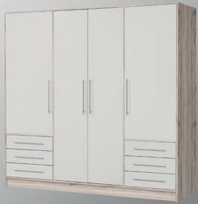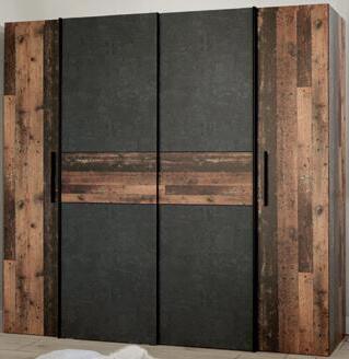 Chambre à coucher Xanten imitation chêne-hickory /couleur inox Lit double avec tiroirs couchage