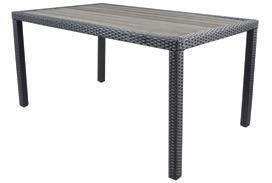Table de jardin Havin rectangulaire, rotin plastique noir, L/H/P env. 150/74/90 cm, pieds noir, panneau bois poly gris 0294011400