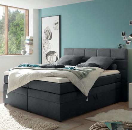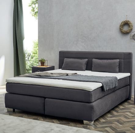 couchage env. 180 x 200 cm, en suspension à ressorts de Bonell, matelas supérieur matelas supérieur la poche supérieure matelas 7-zones à ressorts, avec viscosurmatelas, avec coffre à literie, tissu anthracite, sans coussins-déco, sans couverture-déco